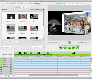 If I'd had Singular Software's Presto, I probably could have done the job in half the time, and done a better job too. Presto is an external application which automatically inserts the slides, and lets you choose the arrangement of speaker and slide, before sending the results to your editing application for final finishing. For those that need to make video's of presentations, it is a god send. And while it is primarily designed to be used with footage of a speaker talking to a PowerPoint presentation or slide show, it can be almost as useful for working with software demos or screen recordings. If you want to mix video of your speaker with the presentation, this is the tool to use.